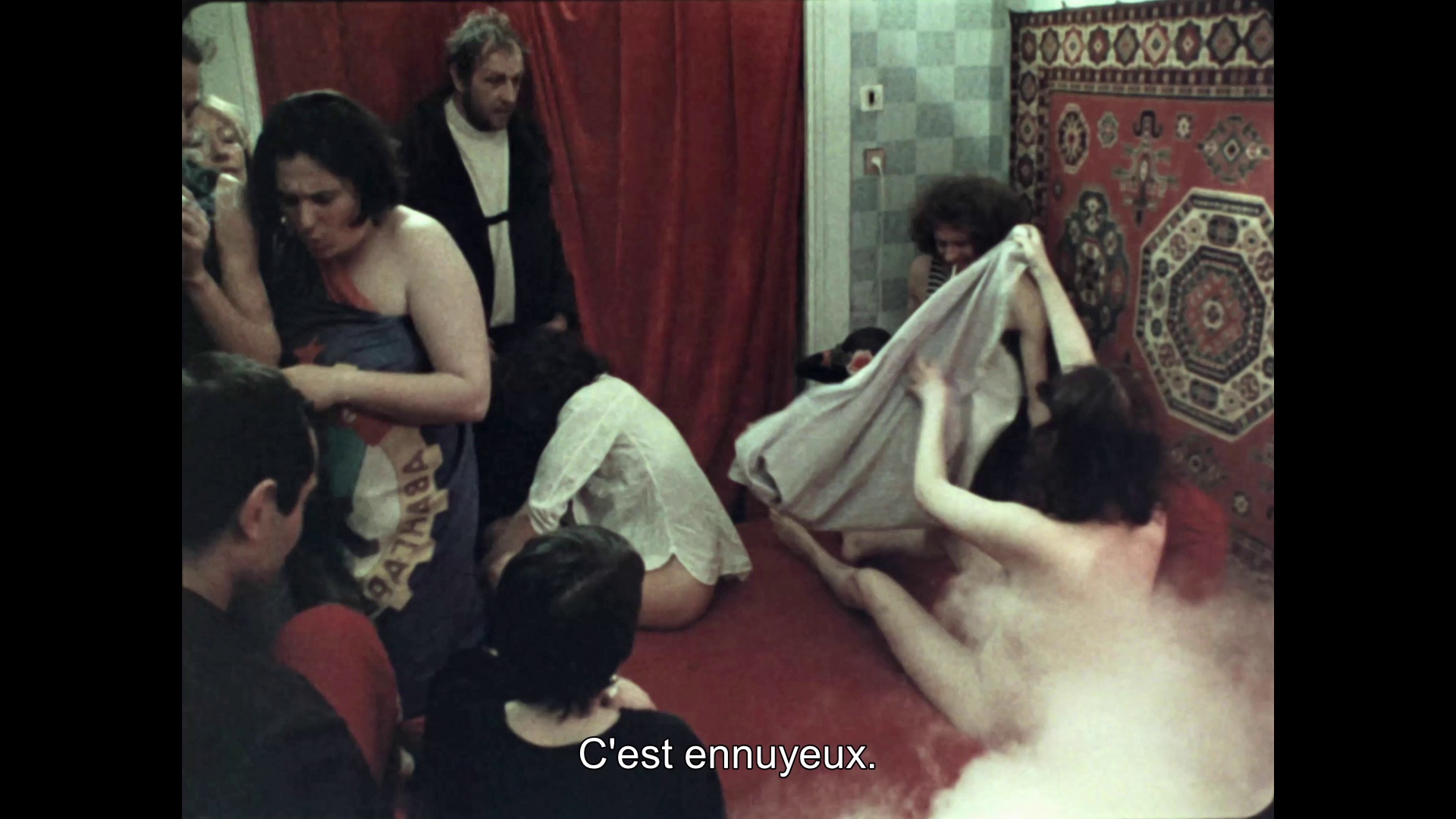 这部电影采用的是“戏中戏”的结构,写一群人在电影院里看电影,电影中放映的是一个胖女人对她刚去世丈夫的悲痛追忆。她一生都被神经衰弱和忧郁症所折磨,当她无法面对残酷现实的痛苦时便以睡眠作为逃避方式,最后也死在沉睡之中。影片外的情节则是一个节目主持人面对电影观众在讨论苏联的电影历史和现状,但这群观众却个个心不在焉,一个个趁机开溜,最后只有一个睡着的观众和两排穿制服的士兵。