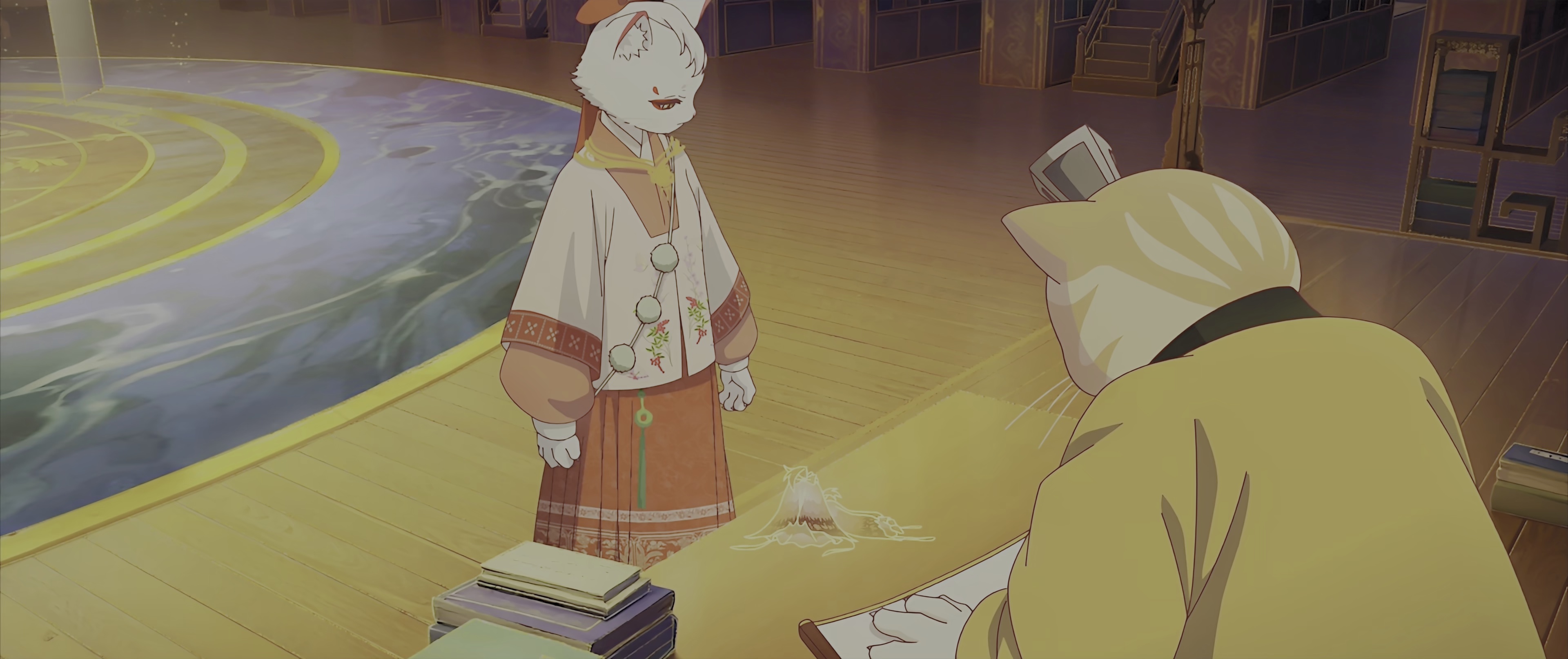 在历史悠久,文化底蕴深厚的故宫之中,住着很多可爱的猫猫,在人类看来,它们过着令人艳羡的悠闲生活。其中有六只御猫与众不同,它们肩负着保护文物记忆——“物华”的重任。它们进入物华的世界,一次次战胜破坏者黑枭,让物华世界重新回归到正确的轨道上,从而守护文物。这六只御猫分别是文班的鲁班、么么,和武班的霜眉、鳌拜、平安、小仔,它们智勇双全、默契无间,组成了守护国宝物华世界的——紫禁御喵房。