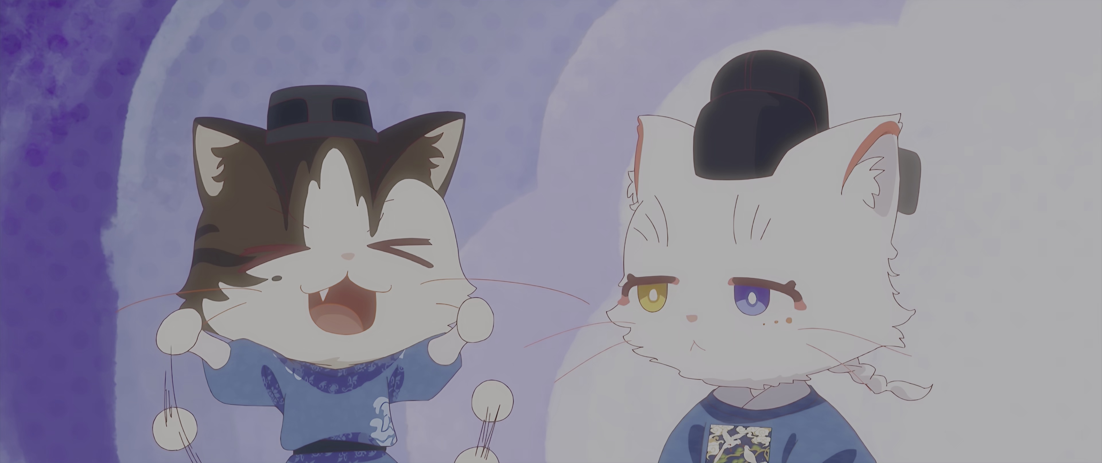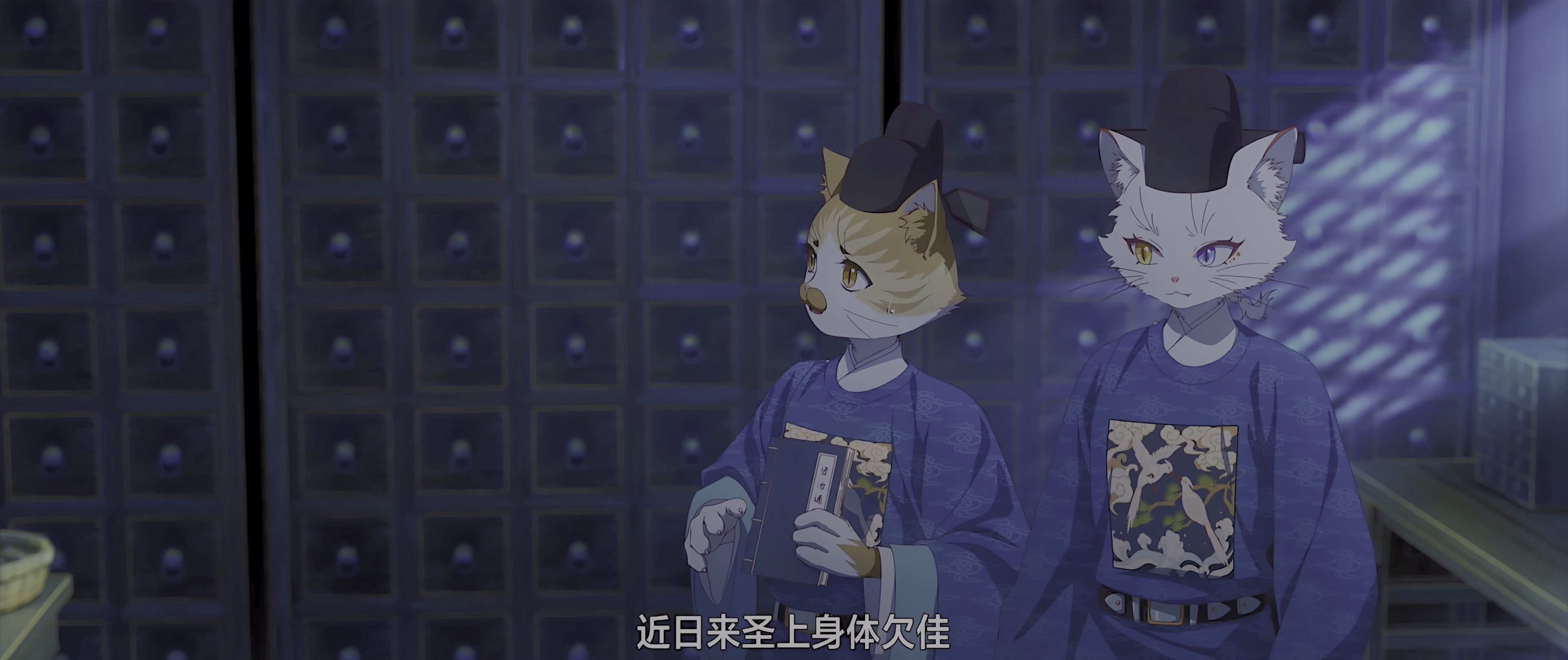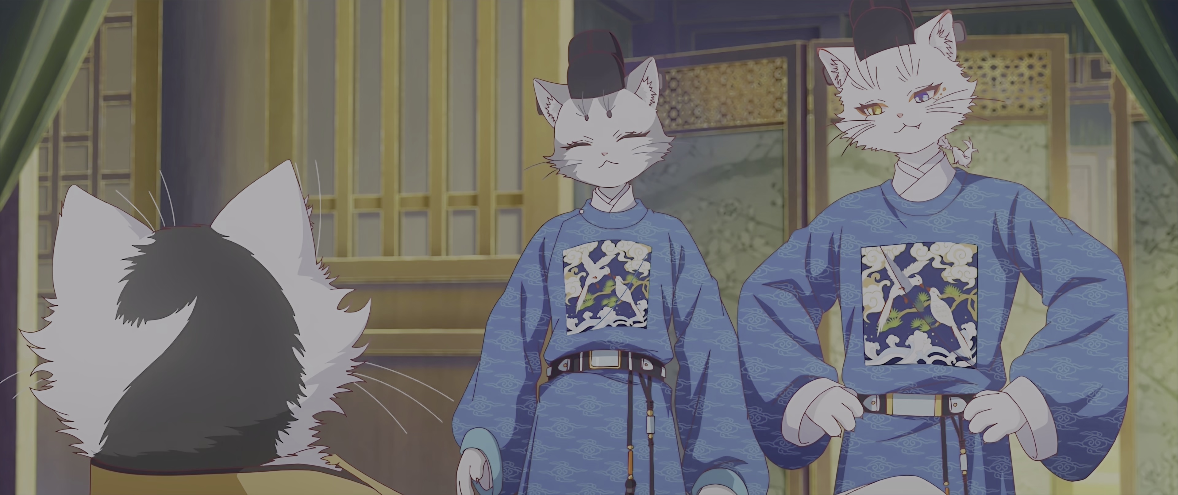 在历史悠久,文化底蕴深厚的故宫之中,住着很多可爱的猫猫,在人类看来,它们过着令人艳羡的悠闲生活。其中有六只御猫与众不同,它们肩负着保护文物记忆——“物华”的重任。它们进入物华的世界,一次次战胜破坏者黑枭,让物华世界重新回归到正确的轨道上,从而守护文物。这六只御猫分别是文班的鲁班、么么,和武班的霜眉、鳌拜、平安、小仔,它们智勇双全、默契无间,组成了守护国宝物华世界的——紫禁御喵房。