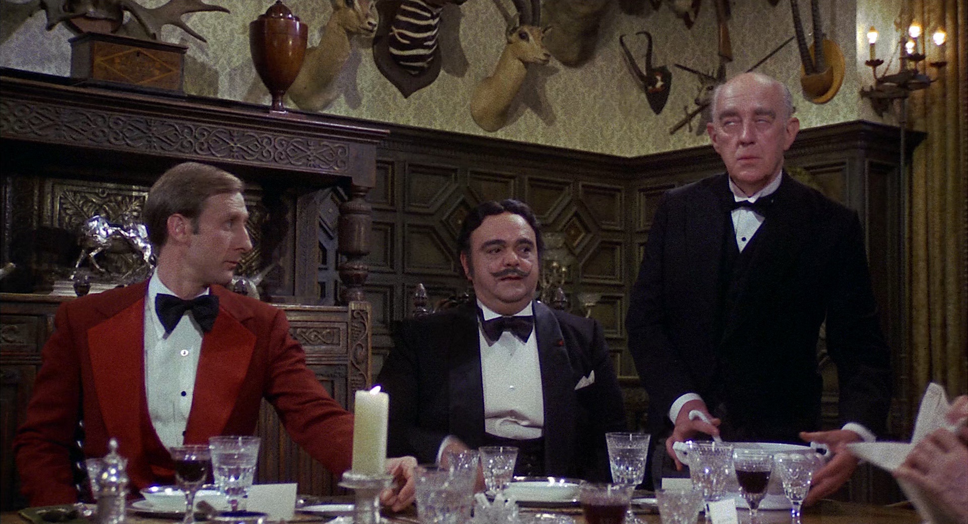神秘宅邸的主人莱昂内尔·吐温(杜鲁门·卡波特 Truman Capote饰)邀请五位世界著名的侦探来到古堡出席一场神秘的晚宴。他们分别是纽约业余侦探迪克·查尔斯顿(大卫·尼文 David Niven饰),比利时侦探米洛·比埃尔(詹姆斯·可可 James Coco饰),上海检查员西德尼·王(彼得·塞勒斯 Peter Sellers饰),英国人杰西卡·马波尔(爱尔莎·兰切斯特 Elsa Lanchester饰)小姐和来自旧金山的萨姆·戴蒙德(彼得·法尔克 Peter Falk饰)。没人知道这次凶险异常的邀约背后到底隐藏着什么样的杀机,但这五位侦探们还是各自带上一位亲属或朋友来到了这座神秘的宅邸。然而莱昂内尔并没有现身,等待他们的是一连串被精心设计过的谋杀事件。 杜鲁门·卡波特凭借本片荣获1977年第34届金球奖电影类-最佳新男演员提名。