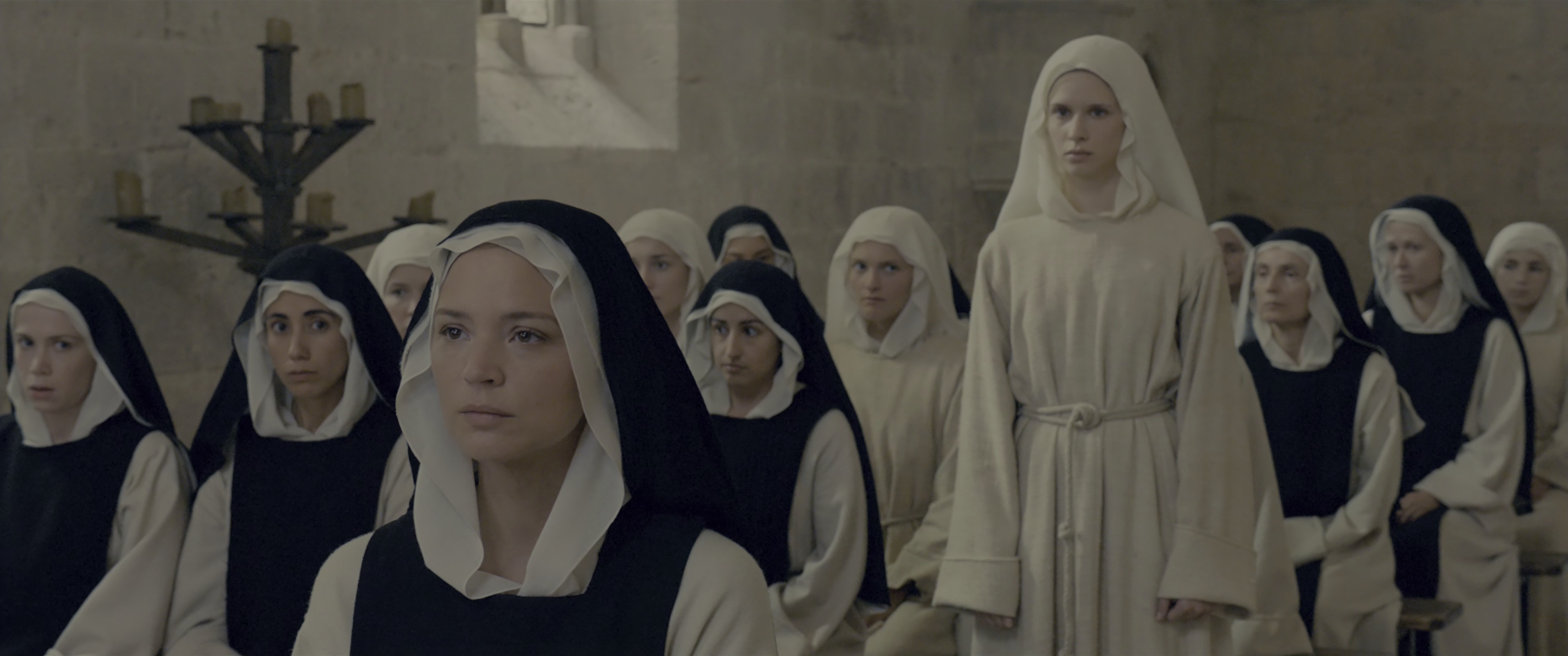 故事改编自真实事件,发生在17世纪位于意大利的一家修道院内。本尼蒂塔(维吉妮·艾菲拉 Virginie Efira 饰)出生在一个富裕而又虔诚的基督教家庭之中,在很小的时候,她就被父母送进了修道院深造,将她作为一名修女培养。在那个年代,进修道院对于一个女孩来说,是何等幸运的事情。 一晃眼多年过去,贝尼蒂塔已经出落成为了大姑娘了,并且成为了修道院院长福利西塔(夏洛特·兰普林 Charlotte Rampling 饰)的得力助手。某日,一个衣衫褴褛的女孩冲进修道院求助,她的名字叫巴托洛梅阿(达芙妮·帕塔基亚 Daphne Patakia 饰),在本尼蒂塔的帮助之下,这个可怜的,遭受了父亲和哥哥虐待的女孩进入了修道院,成为了见习修女。可是,巴托洛梅阿就像一匹野马一样的难以驯服和管教,她的出现很快就让本尼蒂塔感到棘手和难以招架。